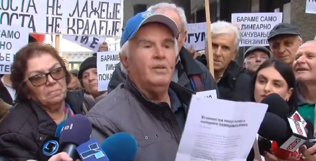 „За првпат се крева гласот на пензионерите. Доста беше со процентуално зголемување на пензиите од 600- 700 денари. Ќе немаме за леб, ако се случи да биде процентуално. Јазот меѓу најголемата и најмалата пензија беше 1 према 4, сега е 1 према 7 и само ќе се зголемува. Доста е пензионерите да бидат поделени“, посочи Трајков.